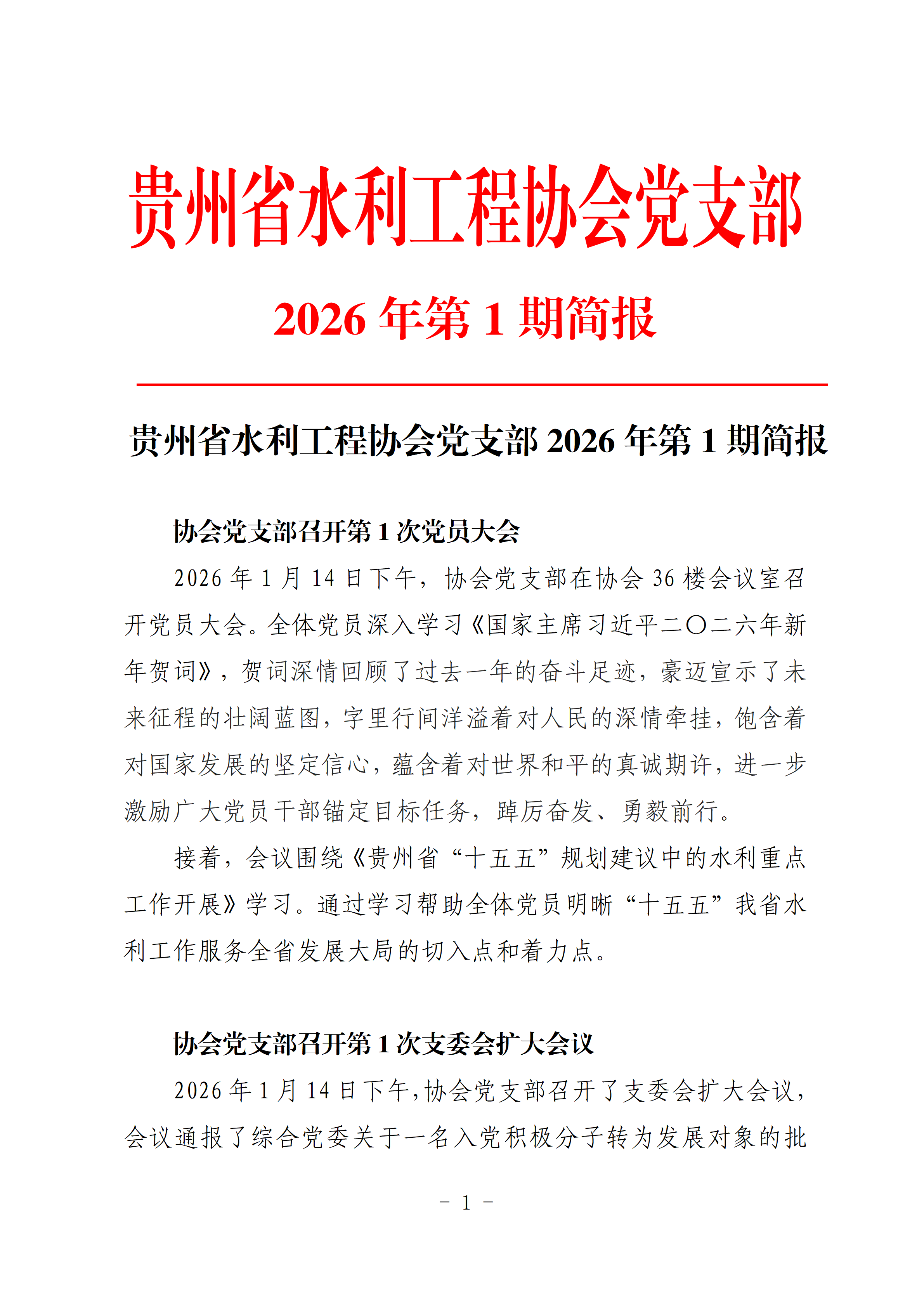 贵州省水利工程协会党支部2026年第1期简报
